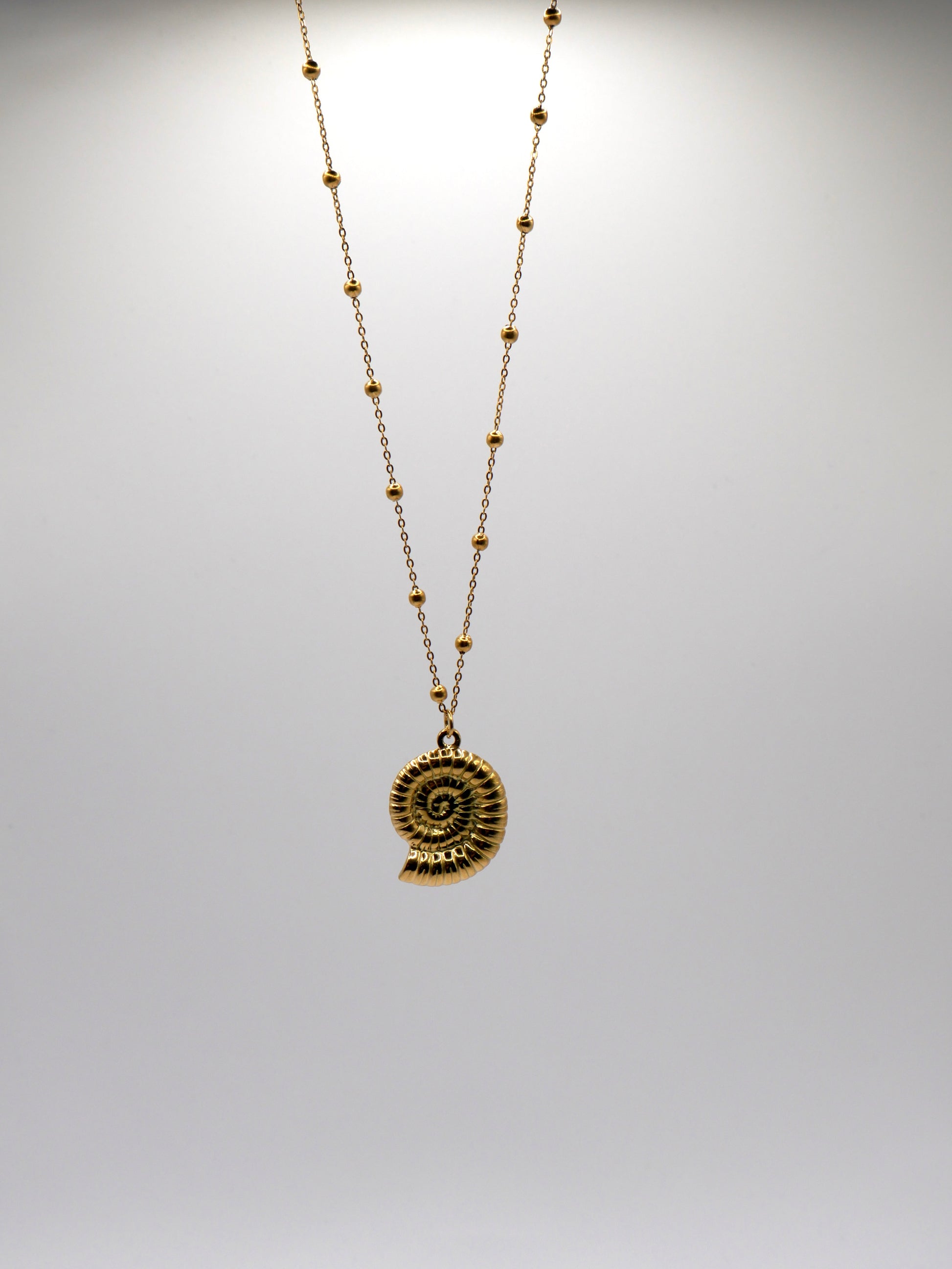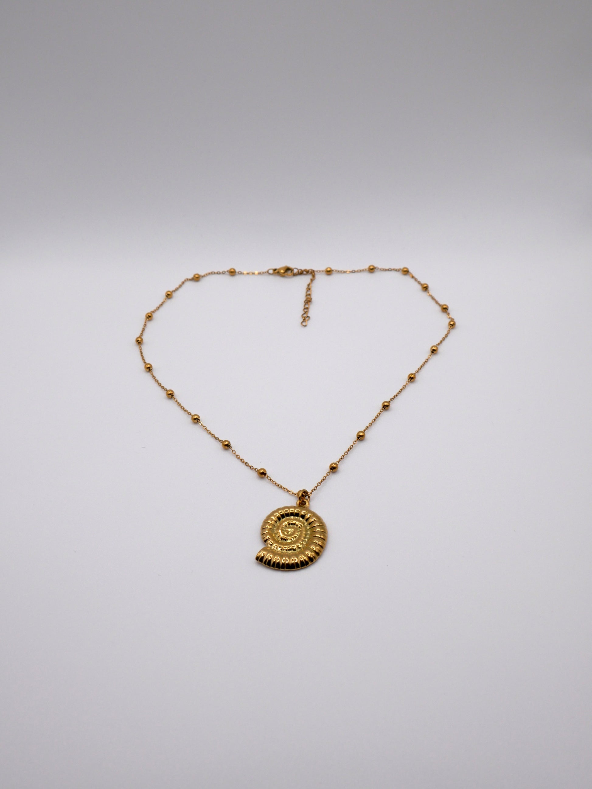 Discover the Gaïane necklace with a shell charm, assembled by hand and made of stainless steel.
