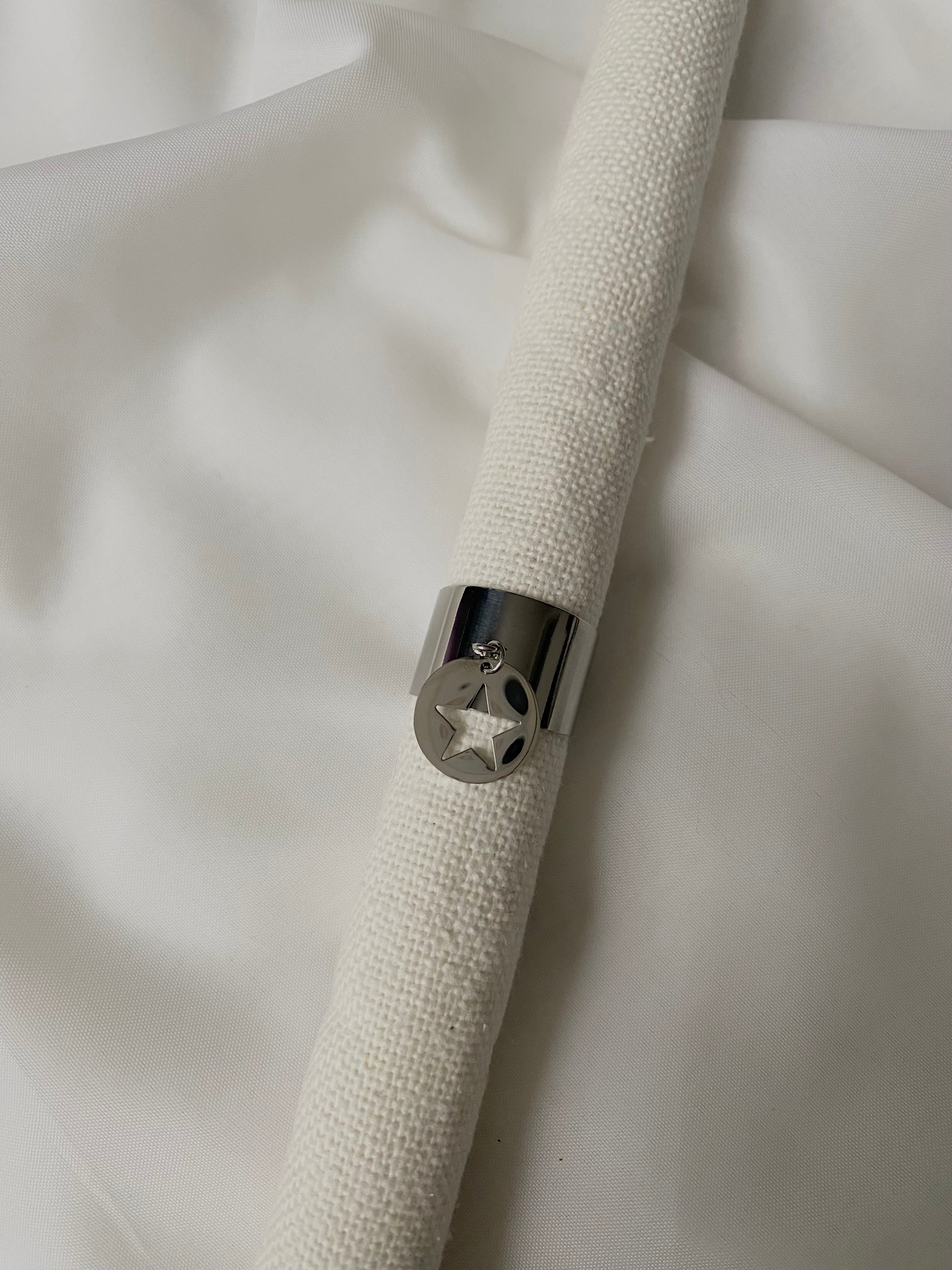 Découvrez la bague breloque Elisa argentée réglable et en acier inoxydable