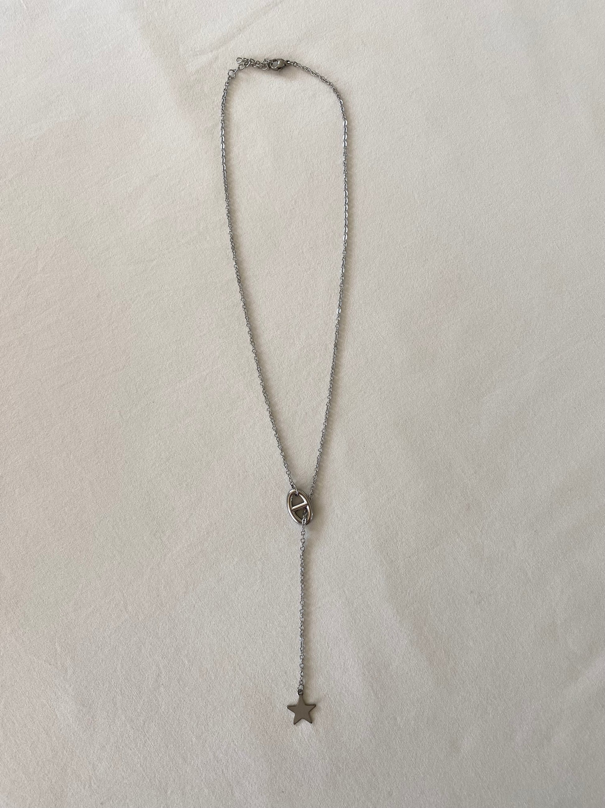 Découvrez le collier sautoir Léonie assemblé à la main en acier inoxydable.
