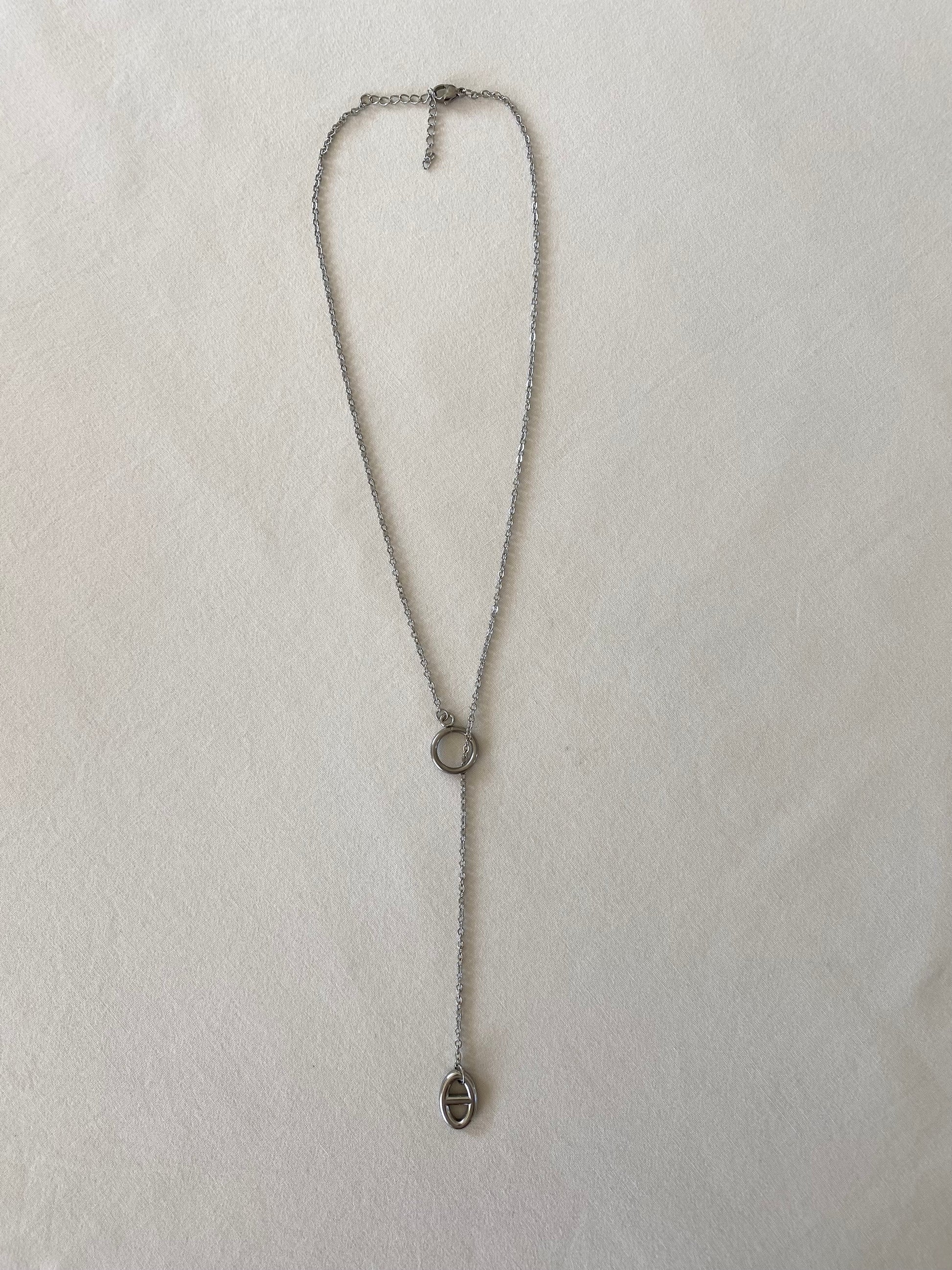 Découvrez le collier sautoir Margaux assemblé à la main en acier inoxydable.